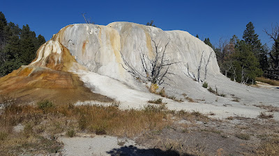 After a little break, we headed over to check out the Mammoth Hot Spring Terraces. I wish pictures could describe it - it's like walking on the moon. Everything is boiling hot. In some places it even looks like the boardwalk is getting burned (which it is) - and the railing can be super hot from the temps from the springs.